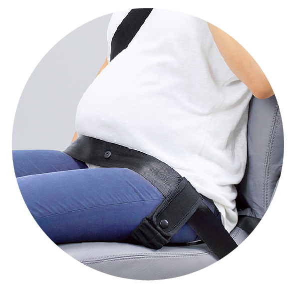 Hold lap belt lower than pregnant woman's belly to reach comfort & safety in sudden brake.